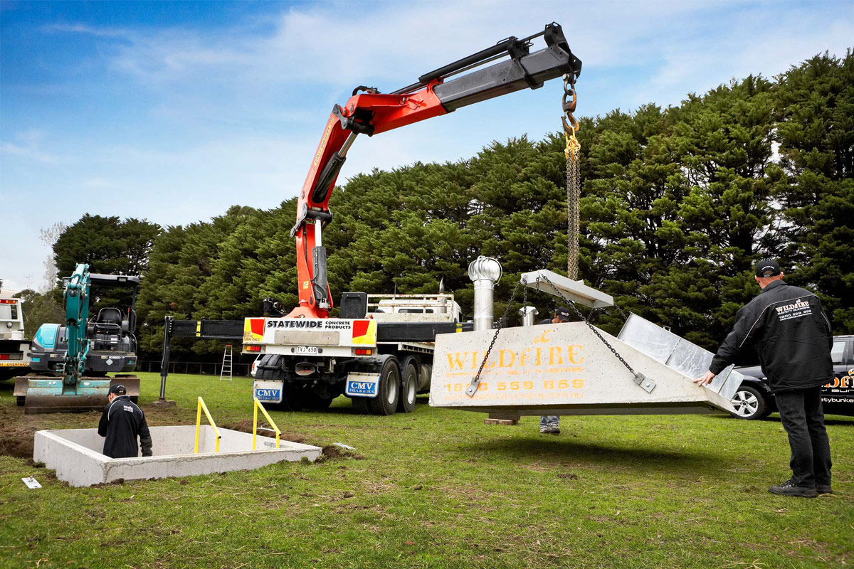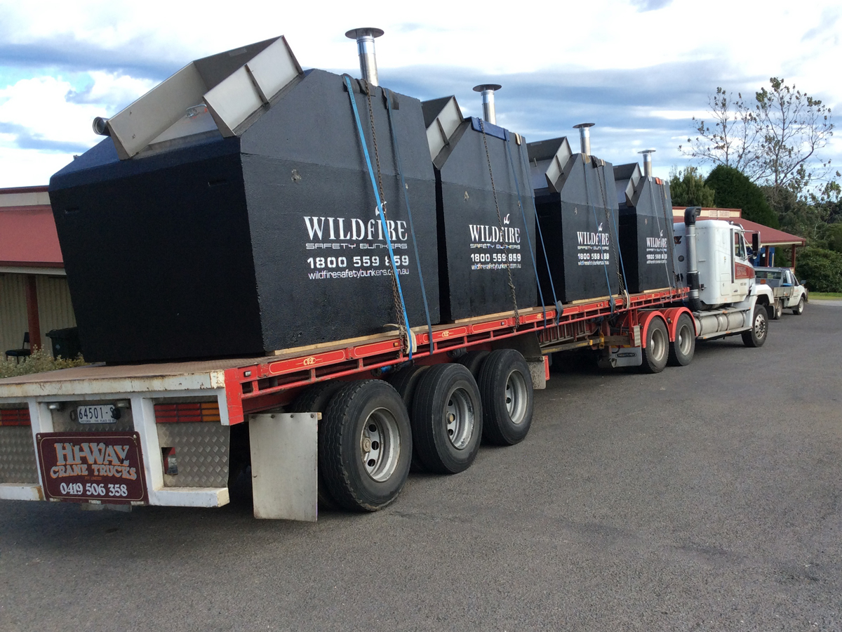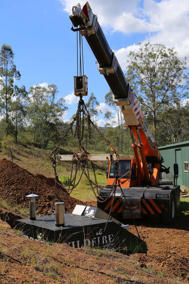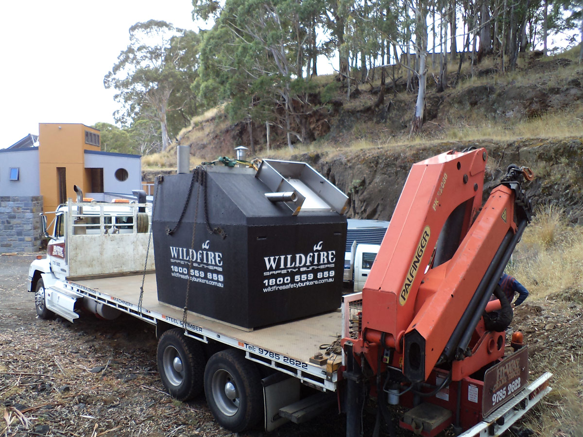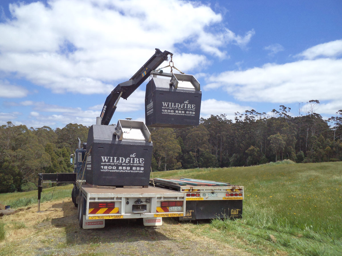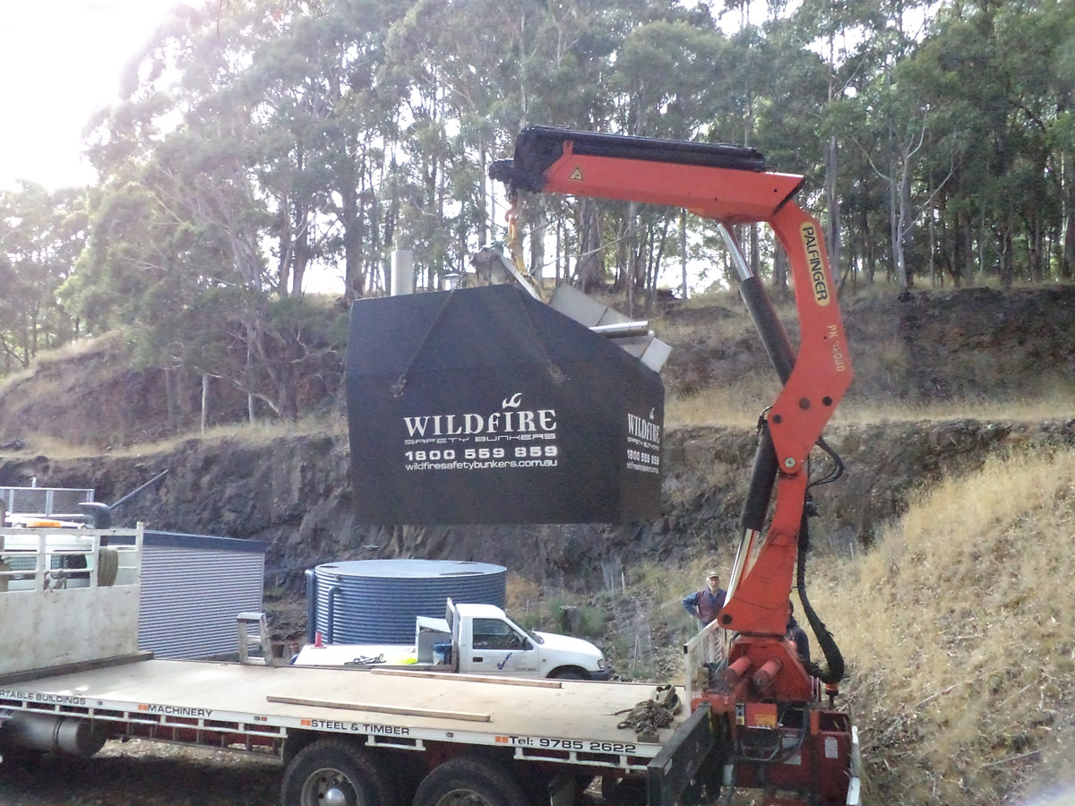 Wildfire have contractors based in most larger towns around Australia, from 20 tonne Franna cranes through to 150 tonne slew cranes, we can find the most economical unit to safely install your bushfire shelter.