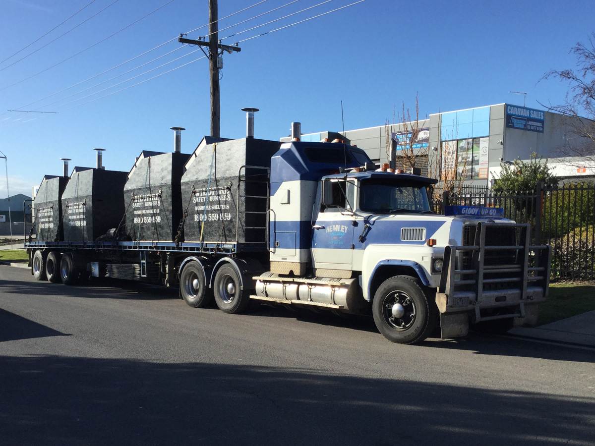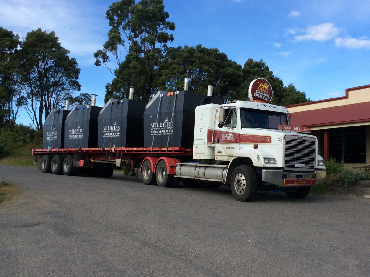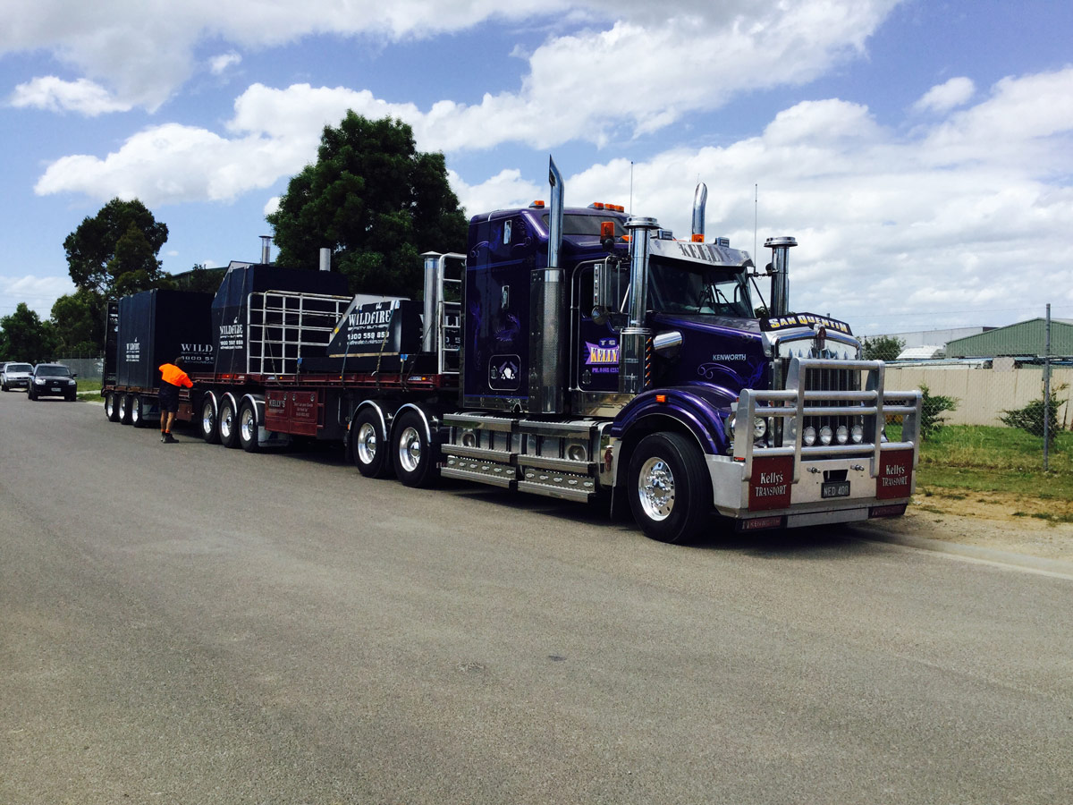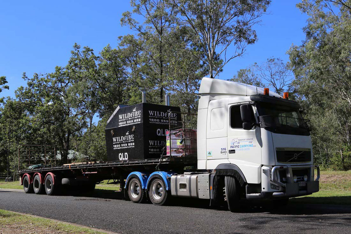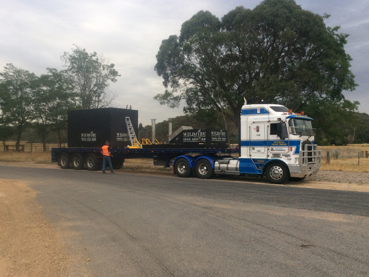 Wildfire uses various means of transport to move our units around Australia, all interstate delivery's are done using large prime movers and trailers, locally our preferred method is by crane truck.